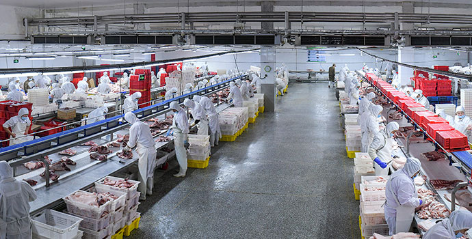 生產(chǎn)設(shè)施的標準化是企業(yè)健康、快速發(fā)展的保障。公司生產(chǎn)設(shè)備設(shè)施配套完善,現(xiàn)有生產(chǎn)車間20000余平方米,配套排酸間,冷凍,冷庫22000余平方米,日產(chǎn)能達到10000頭。